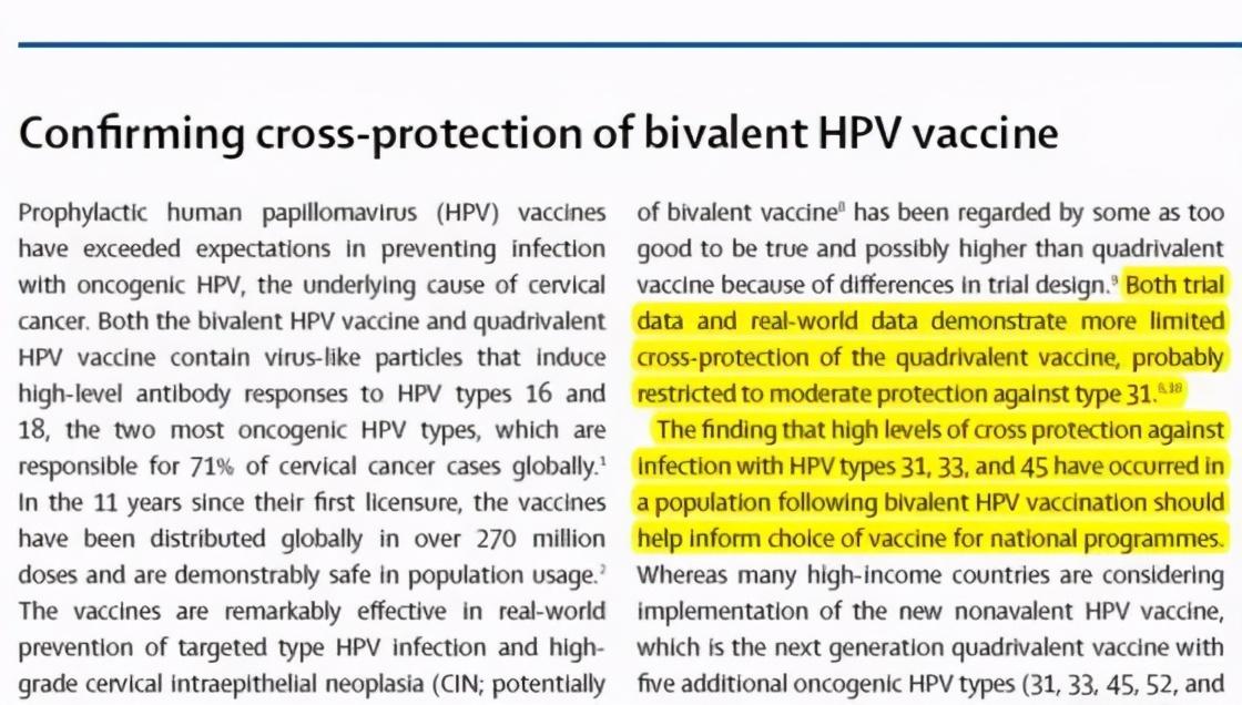 2价疫苗具有一定的交叉保护性,这一点也明确写进了疫苗的说明书中。也就是说:2 价疫苗的预防效果,可能超过我们的预期。