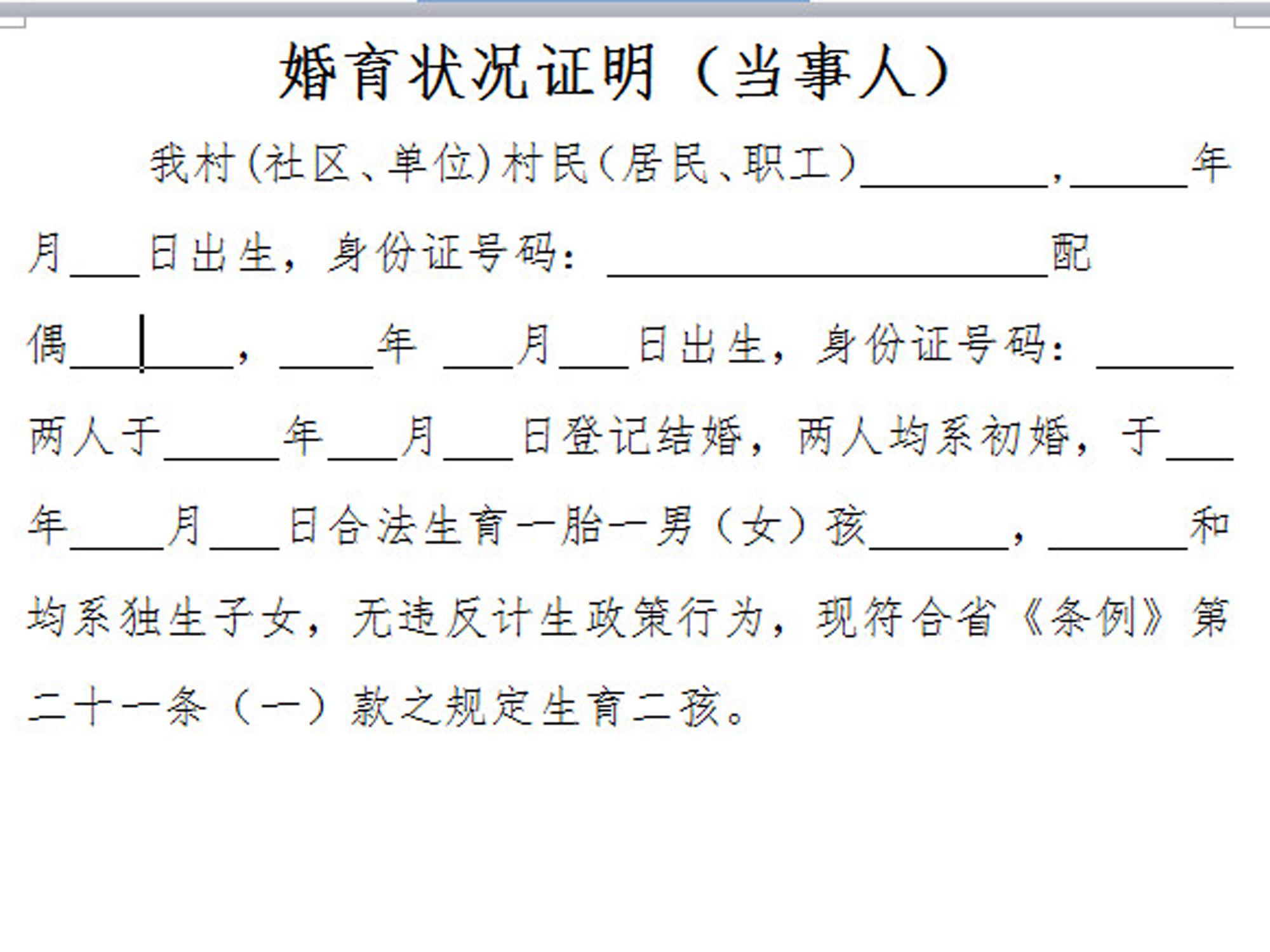 1带好男方开具的婚育证明
